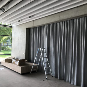 - ca. 60 lfm Vorhangschienen mit Sichtschutzvorhängen in der neuen Mensa